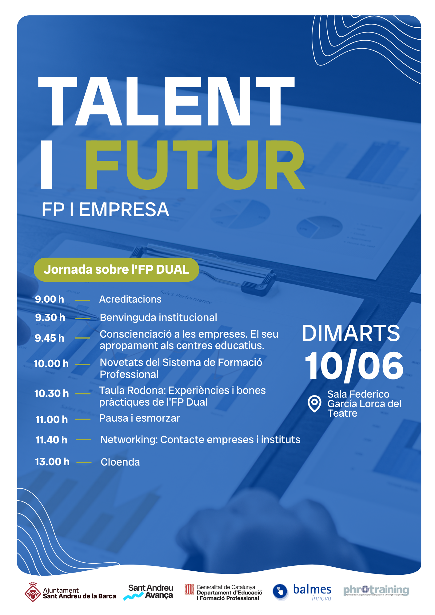 El dimarts 10 de juny es durà a terme la jornada sobre l'FP Dual a la Sala Federico García Lorca del teatre.