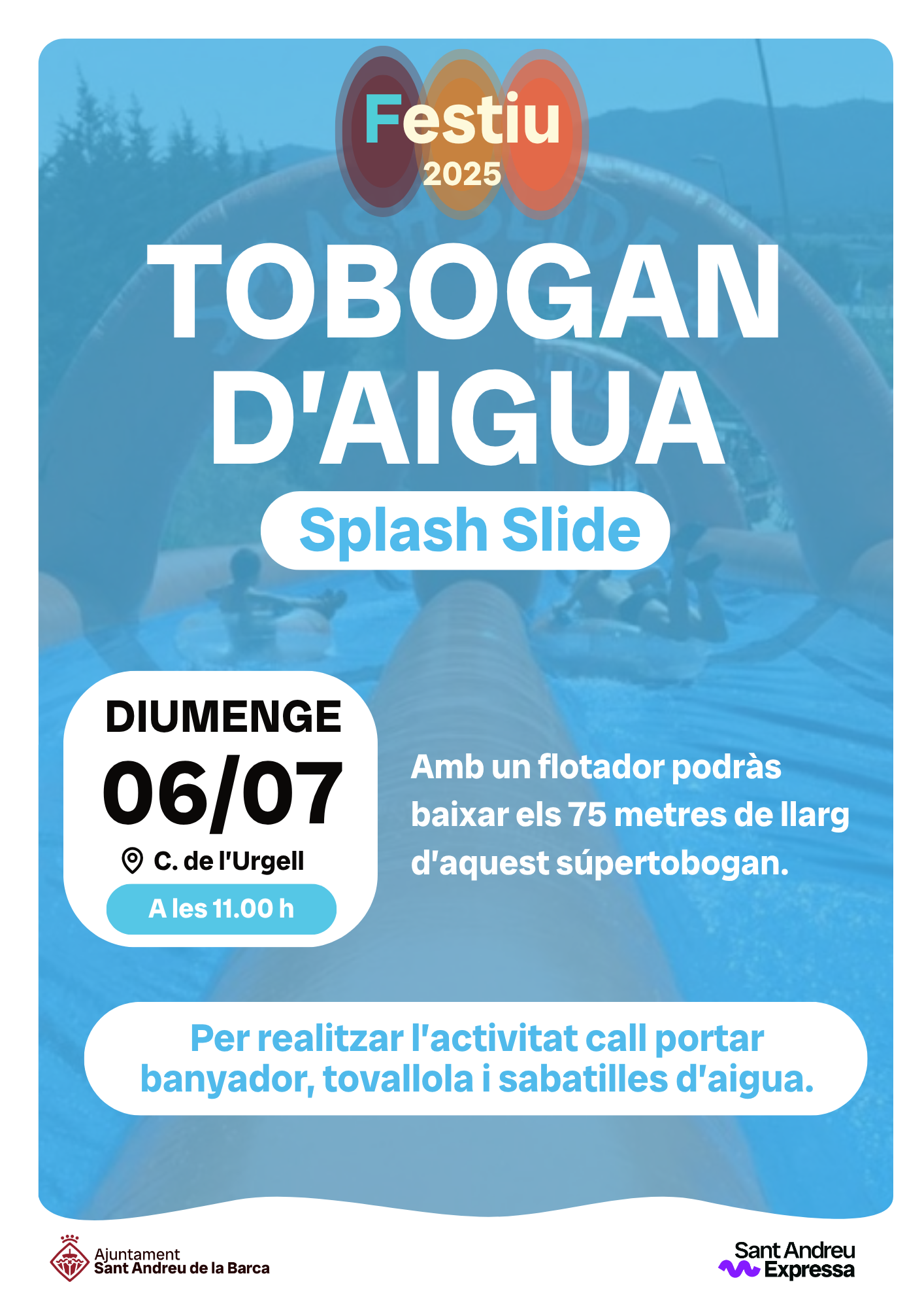 Per realitzar l’activitat cal portar banyador, tovallola i sabatilles d’aigua