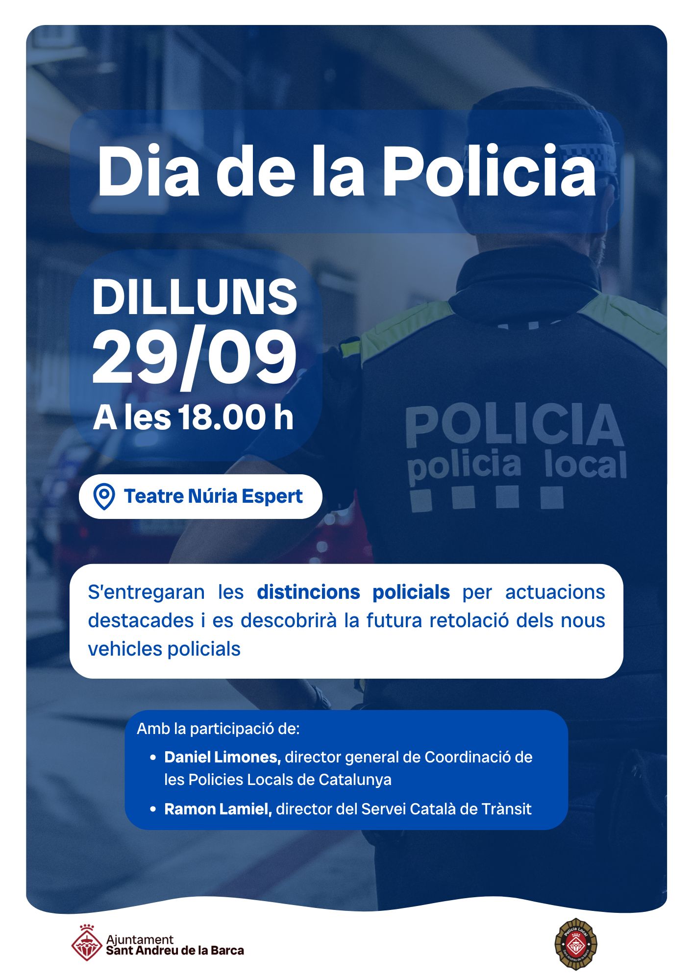S'entregaran les distincions policials per actuacions destacades i es descobrirà la futura retolació dels nous vehicles policials.