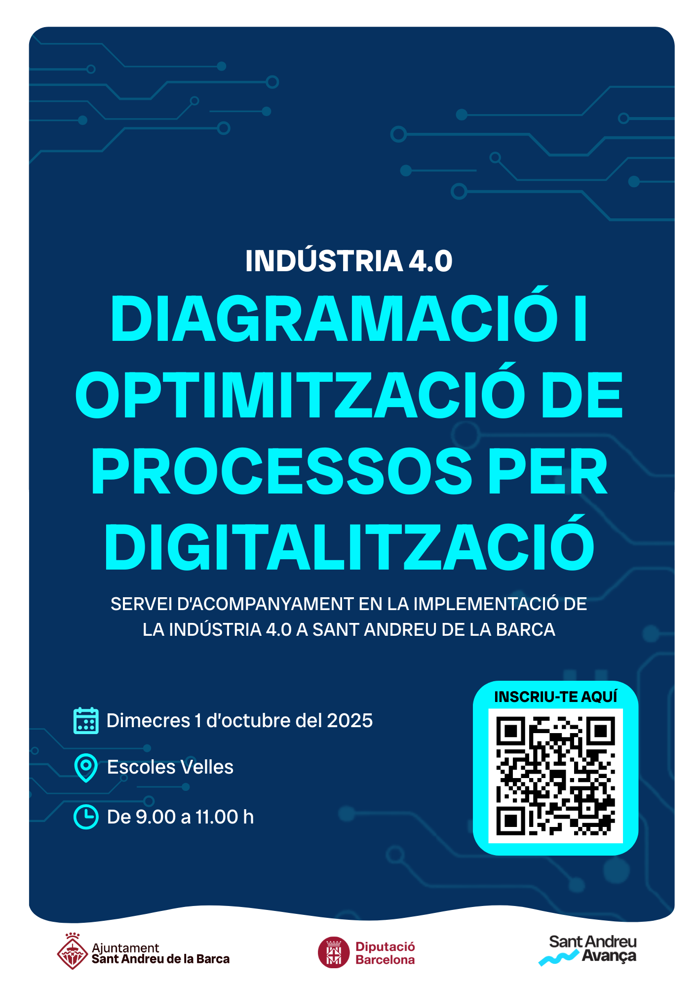 Aquesta iniciativa ofereix serveis d'acompanyament en la implementació de la indústria 4.0 a les empreses Sant Andreu de la Barca, especialment al voltant de l'itinerari de digitalització amb intel·ligència artificial.