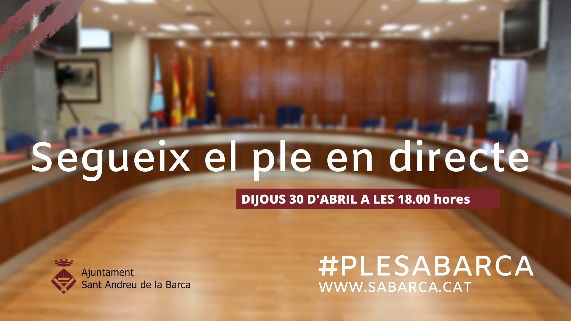 Recordeu que el podeu seguir per streaming a www.sabarca.cat, al canal de Youtube del consistori @ajuntamentsabarca, per Ràdio Sant Andreu i a Twitter amb el hashtag #plesabarca.