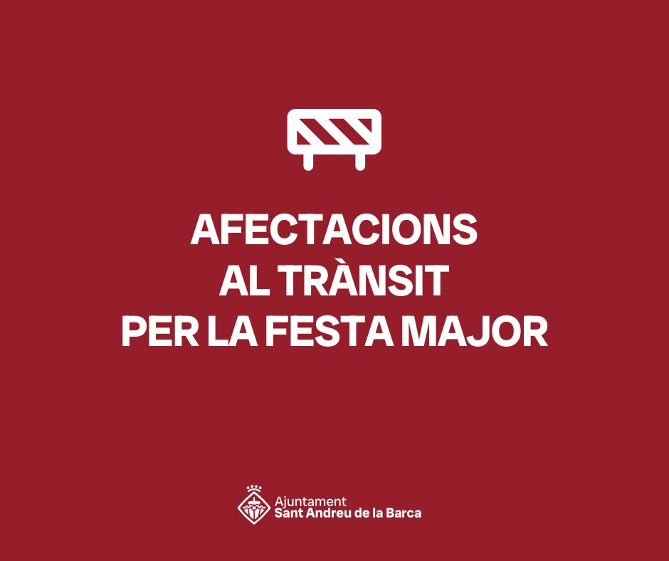 Del 5 al 8 de setembre tenen lloc els actes de la Festa Major 2025 a Sant Andreu de la Barca. La celebració de les diferents activitats comportaran restriccions al trànsit a l’avinguda de la Constitució en diferents trams.