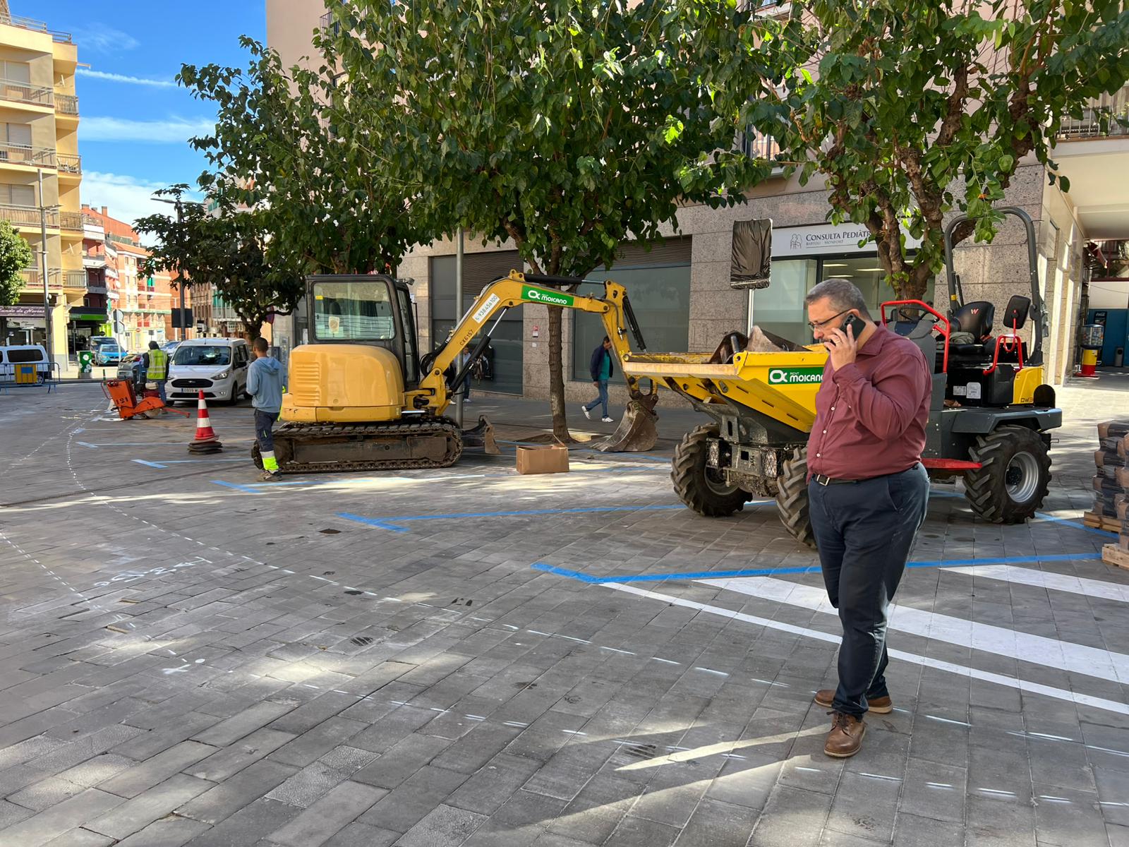 Aquest dilluns han iniciat els treballs a la part inferior de la plaça i a partir del dimarts, 28 d’octubre es començarà a actuar també a la part de dalt. L’asfaltatge comportarà el tall a la circulació de vehicles fins que acabi la intervenció. L’Ajuntament ha coordinat les actuacions amb els treballs previs d’Endesa per millorar la xarxa elèctrica per tal d’optimitzar els recursos.