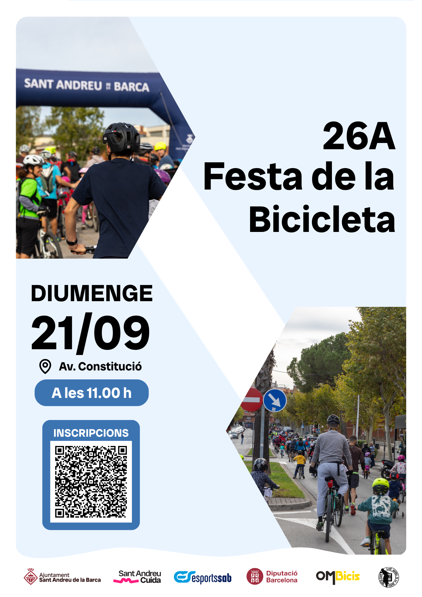 Diumenge 21 de setembre se celebrarà la 26a edició de la Festa de la Bicicleta a Sant Andreu de la Barca. Una jornada familiar per a gaudir d’una ruta urbana per la ciutat plantejada com una passejada i apta per a tota la ciutadania, tant per persones que practiquen sovint aquesta disciplina com per a esporàdics.