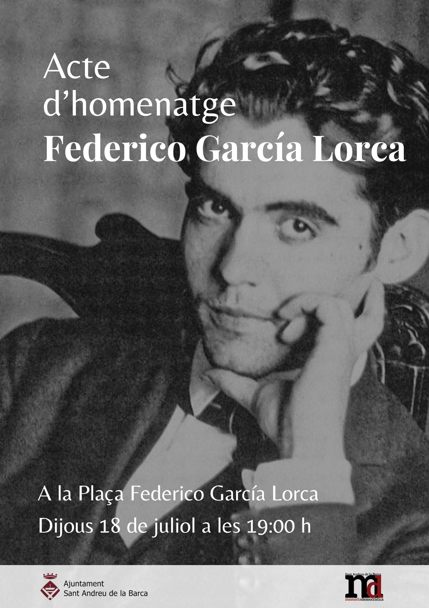 El dijous 18 de juliol, coincidint amb l'aniversari de l'inici de la guerra civil, farem homenatge a Federico García Lorca, poeta que va ser afusellat pel feixisme en el camí de Víznar a Alfacar, Granada, el 18 d'agost de 1936.