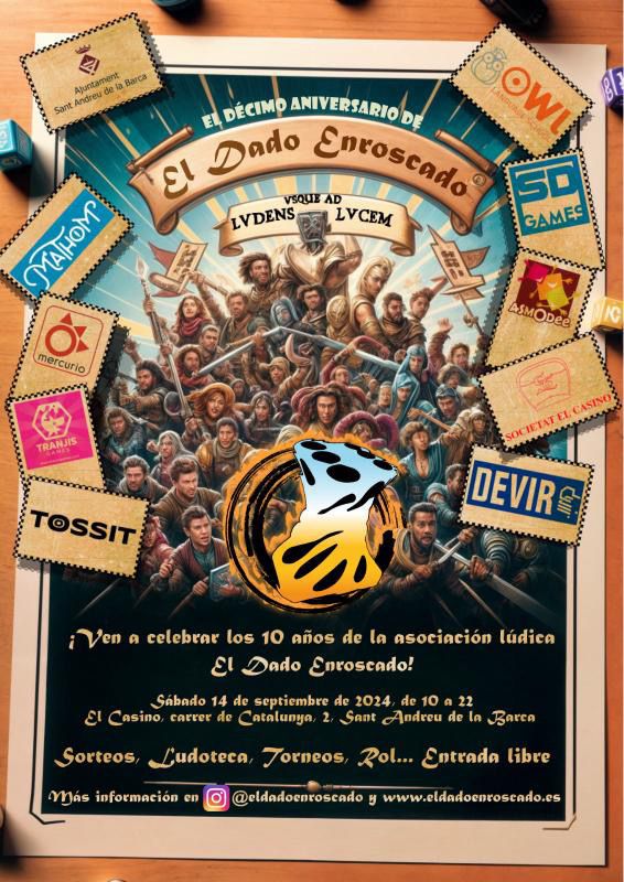 Vine a celebrar els 10 anys de l'associació lúdica El Dado Enroscado. Sorteigs, espai de ludoteca i molt més aquest dissabte 14 de setembre de 10:00 a 22:00 hores.