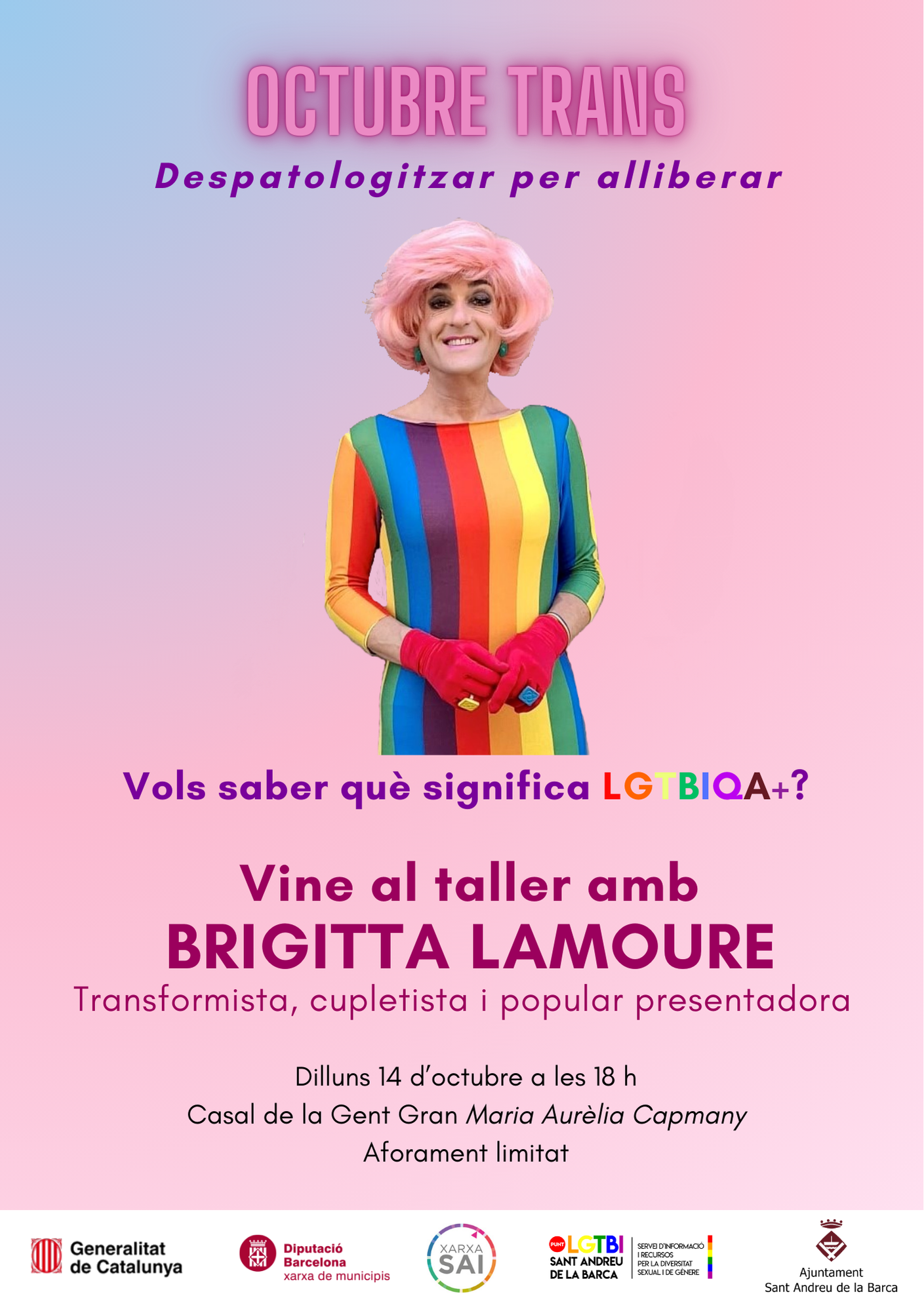 Taller divulgatiu LGTBIQA+ a càrrec de Brigitta Lamoure, transformista, cupletista i popular presentadora.