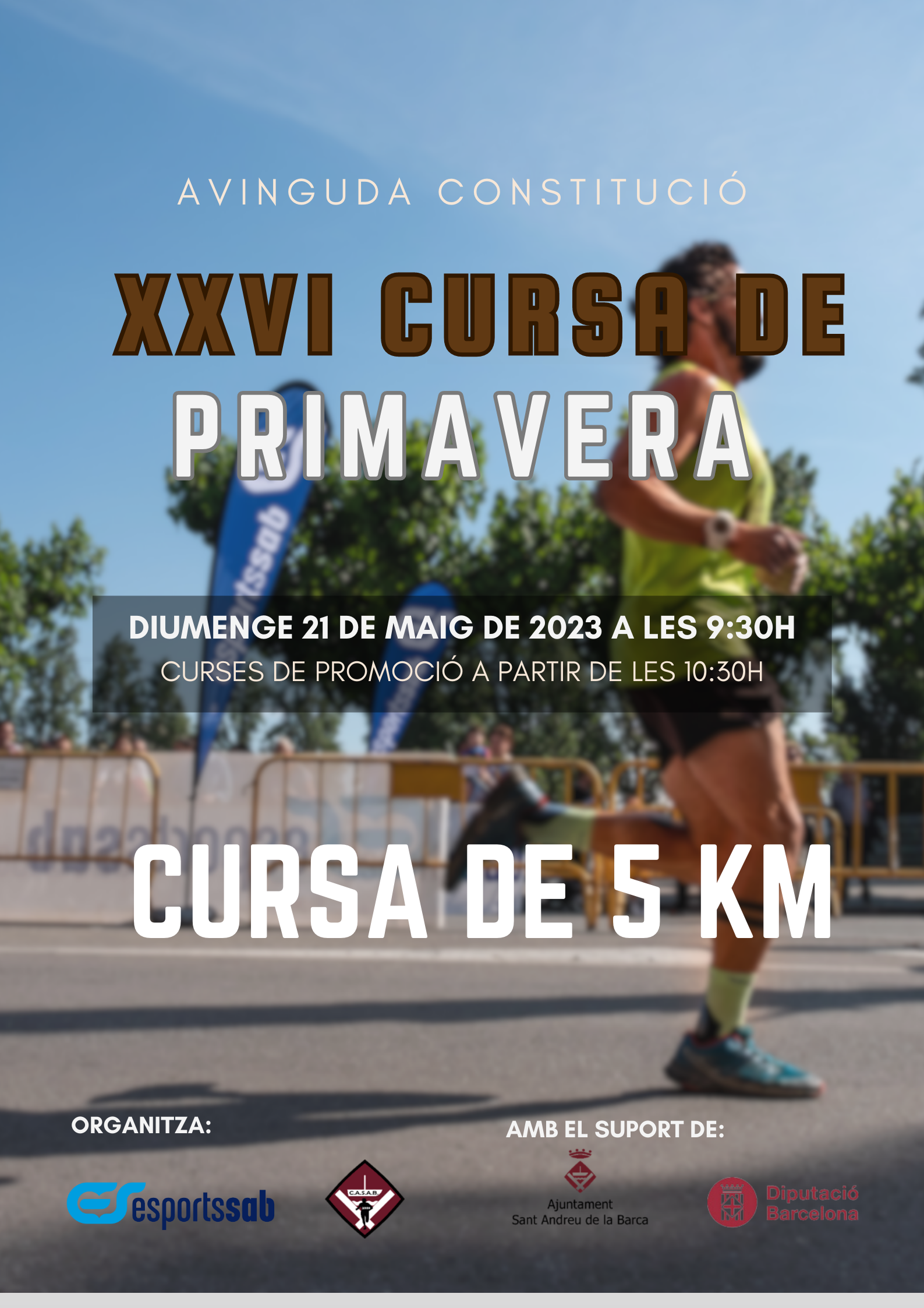Esportssab, amb la col·laboració del Club Atletisme Sant Andreu de la Barca i amb el suport institucional de l'Ajuntament de Sant Andreu de la Barca, organitza el diumenge 21 de maig de 2023, la XXVI Cursa Popular de Primavera, oberta a tothom que accepti i respecti tant la distància per a recórrer com el reglament de l'acte.
