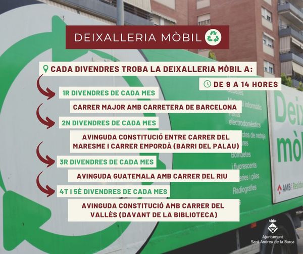 Divendres 26 de maig trobaràs la deixalleria mòbil a l'Avinguda Constitució amb carrer del major