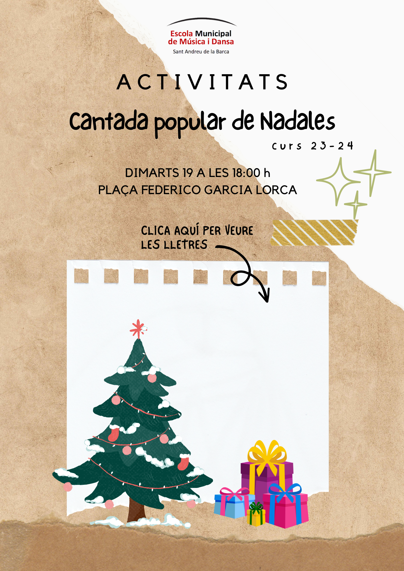 Cantada Popular de Nadales a càrrec de les corals de l’Escola Municipal de Música i Dansa. Des dels més petits fins a la Coral d’Adults es reuniran a la plaça per cantar les nadales més tradicionals del nostre cançoner popular.