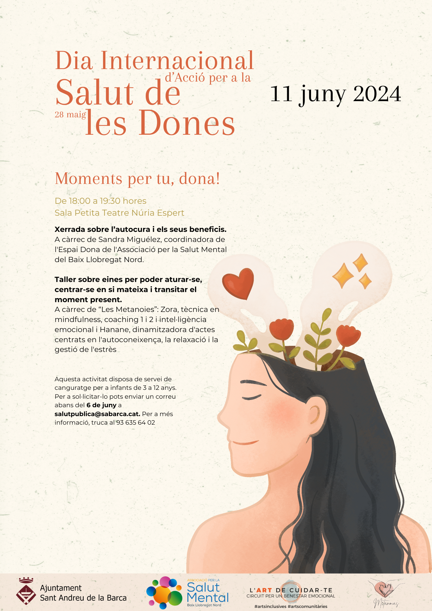 Demà dimarts 28 de maig és el Dia Internacional d'Acció per a la Salut de les dones i aquest any, l'Ajuntament de Sant Andreu de la Barca tornarà a commemorar aquest dia amb xerrades i tallers sobre l'autocura i el benestar mental programats el pròxim dimarts 11 de juny. A la sala Federico García Lorca del Teatre Núria Espert en horari de 18 a 19:30 hores.