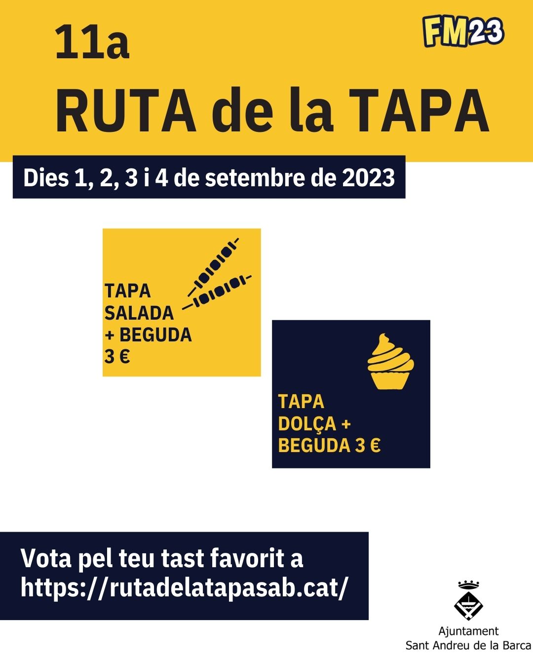 L’Ajuntament de Sant Andreu de la Barca, des de la Regidoria de Promoció Econòmica, Ocupació, Formació, Indústria, Comerç i Turisme, organitza l’onzena edició de la Ruta de la Tapa, una activitat que ja s’ha consolidat dins el programa de la Festa Major.