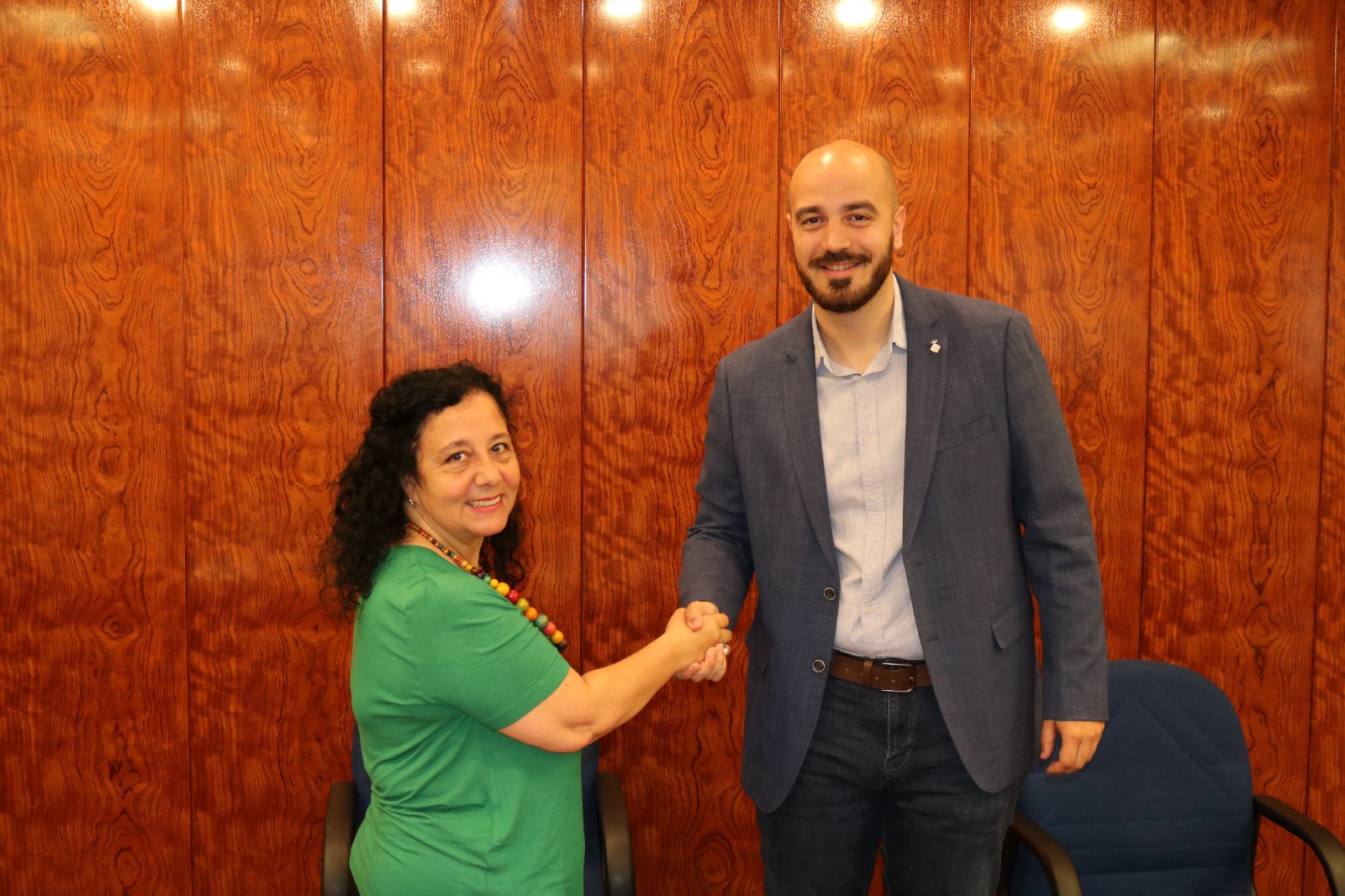 La signatura del pacte s’ha fet avui a la Sala de Plens de l’Ajuntament amb la presència de l’alcalde, Marc Giribet, i de la regidora d’En Comú Podem, Isabel Marcos.