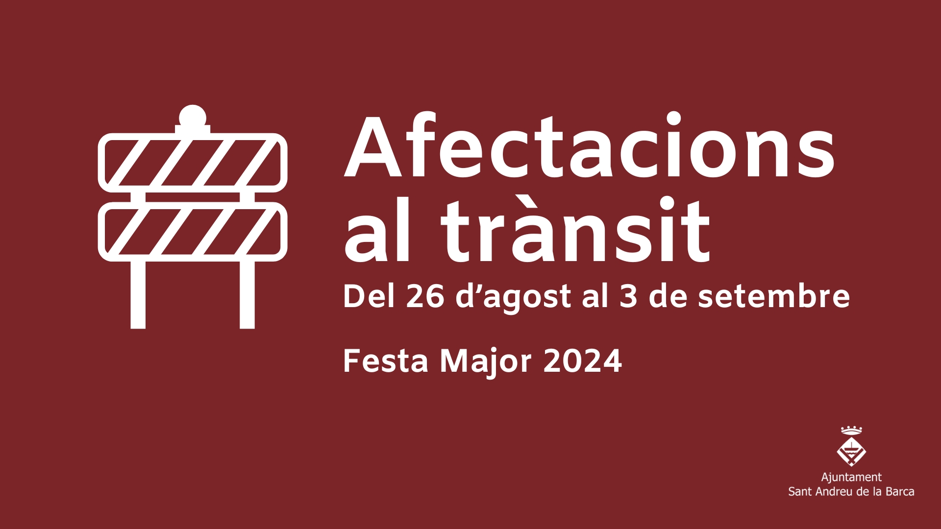 Els dies 30 i 31 d’agost i 1 i 2 de setembre tenen lloc els actes de la Festa Major 2024 a Sant Andreu de la Barca. Unes celebracions que comportaran diferents restriccions al trànsit en diferents trams a l’Avinguda Constitució des del 26 d’agost i fins al 3 de setembre.