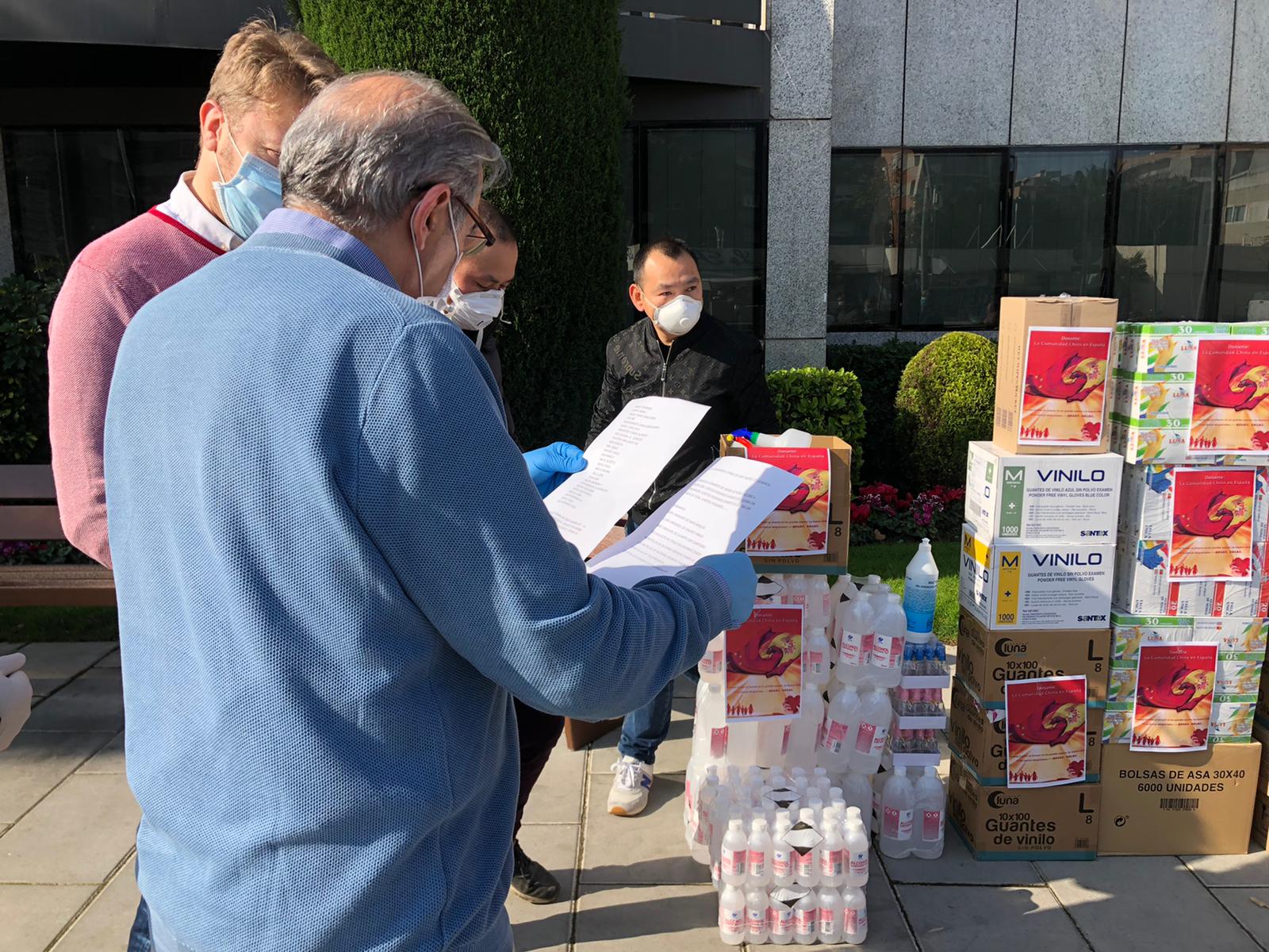 Entre el material cedit per la comunitat xinesa hi ha ampolles d’alcohol sanitari, mascaretes, guants i tovalloletes higièniques.
