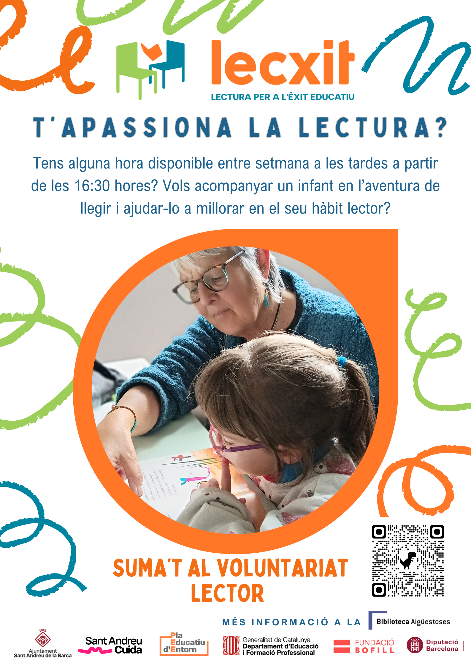 - Què busquem? Persones voluntàries amb interès per la lectura i motivació per compartir temps amb infants, amb ganes d’acompanyar-los en el seu procés de millora lectora.