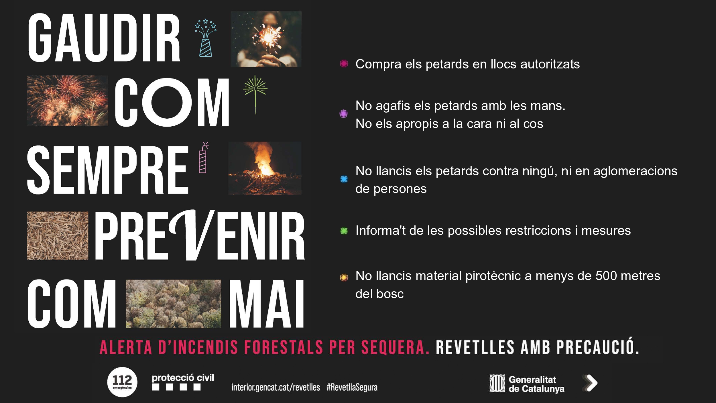 Les condicions meteorològiques i ambientals d’aquest any, amb altes temperatures, baixa humitat i sequera, fan que hàgim d’extremar les precaucions durant la revetlla de Sant Joan.