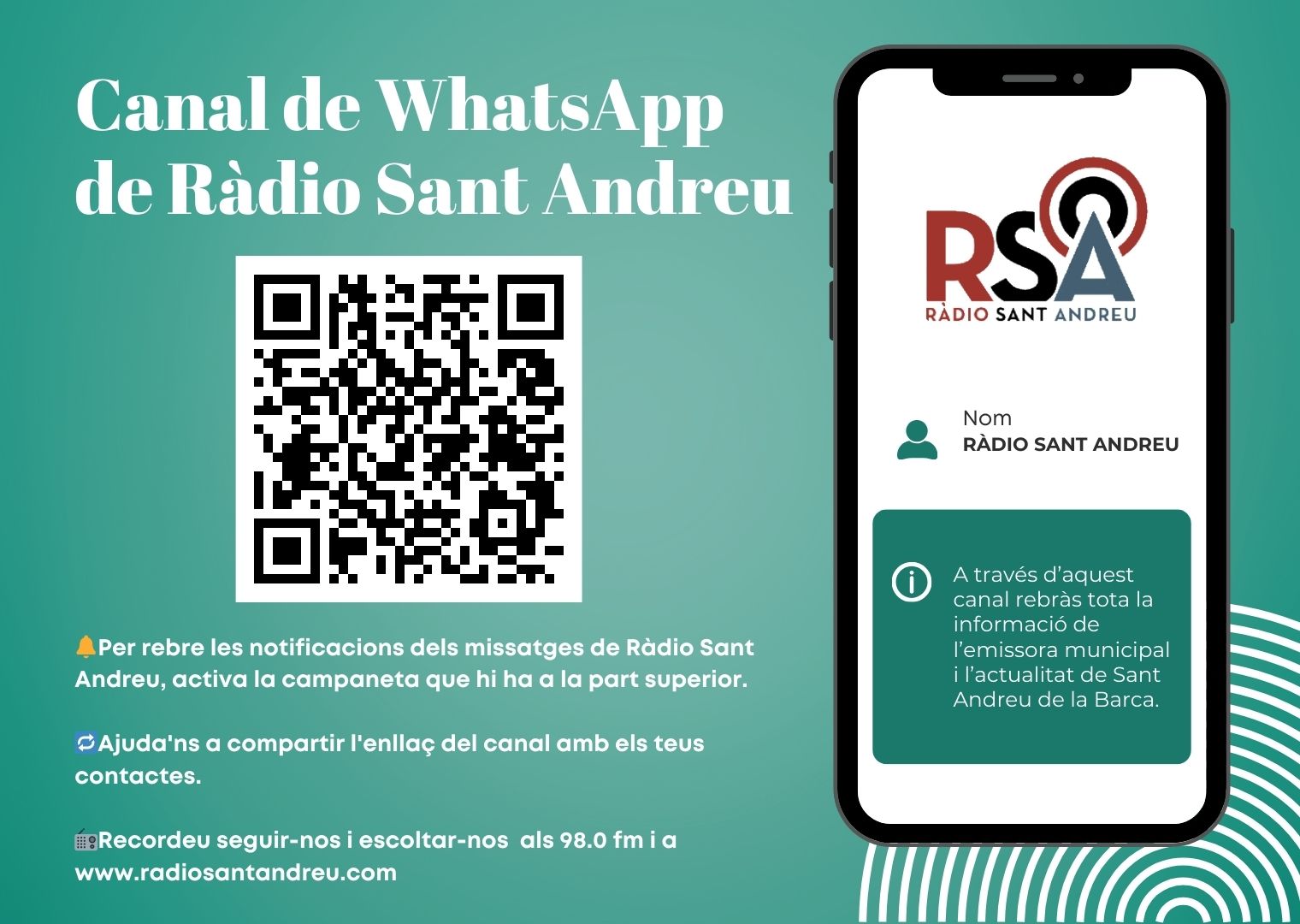 Amb l’objectiu de continuar establint lligams amb els oïents, Ràdio Sant Andreu ha creat el Canal de WhatsApp, una nova eina de comunicació que permetrà estar al dia de l’actualital local i de la programació de Ràdio Sant Andreu.