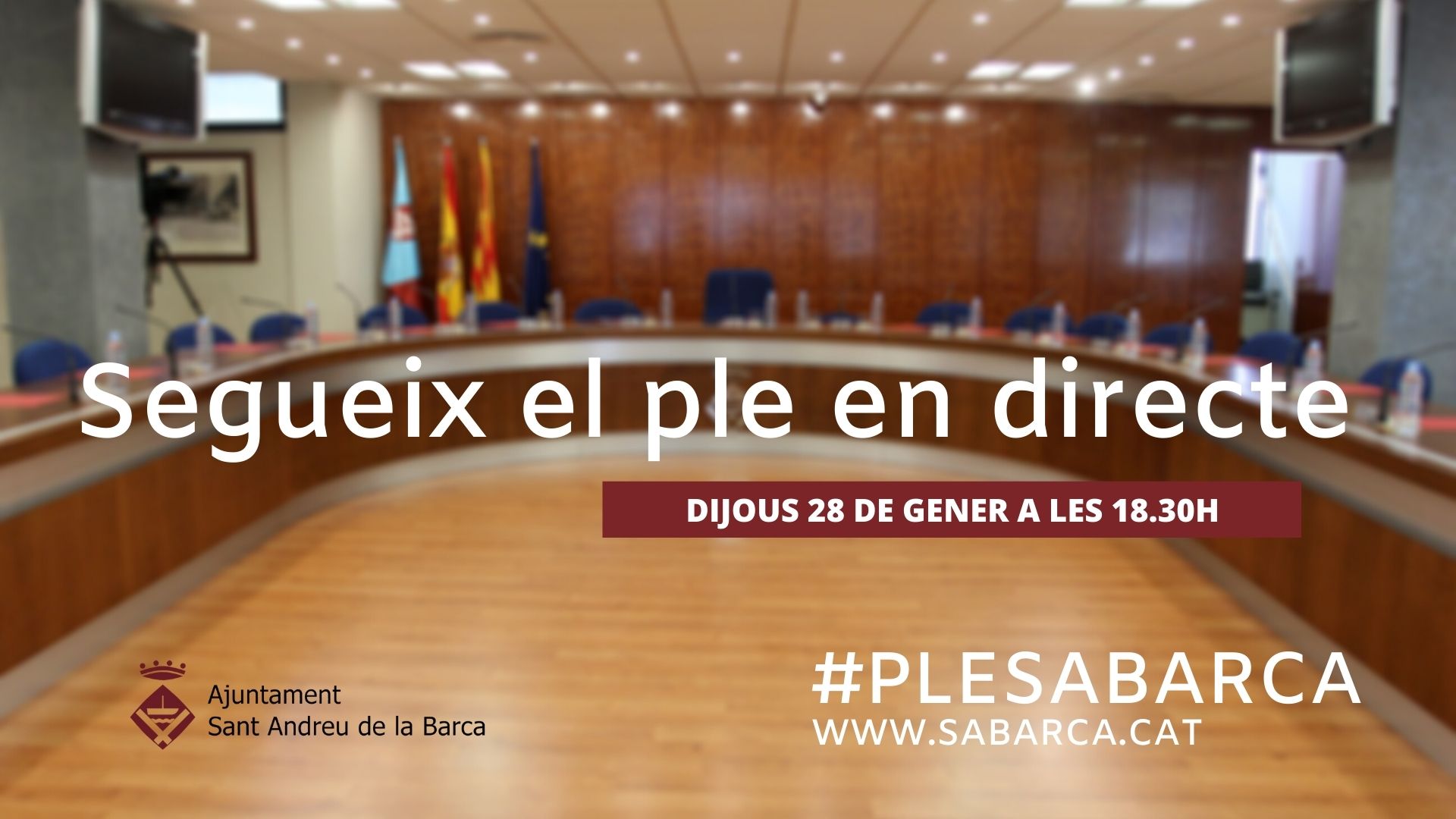 Recordeu que el podeu seguir per streaming a www.sabarca.cat, al canal de Youtube del consistori @ajuntamentsabarca, per Ràdio Sant Andreu i a Twitter amb el hashtag #plesabarca.