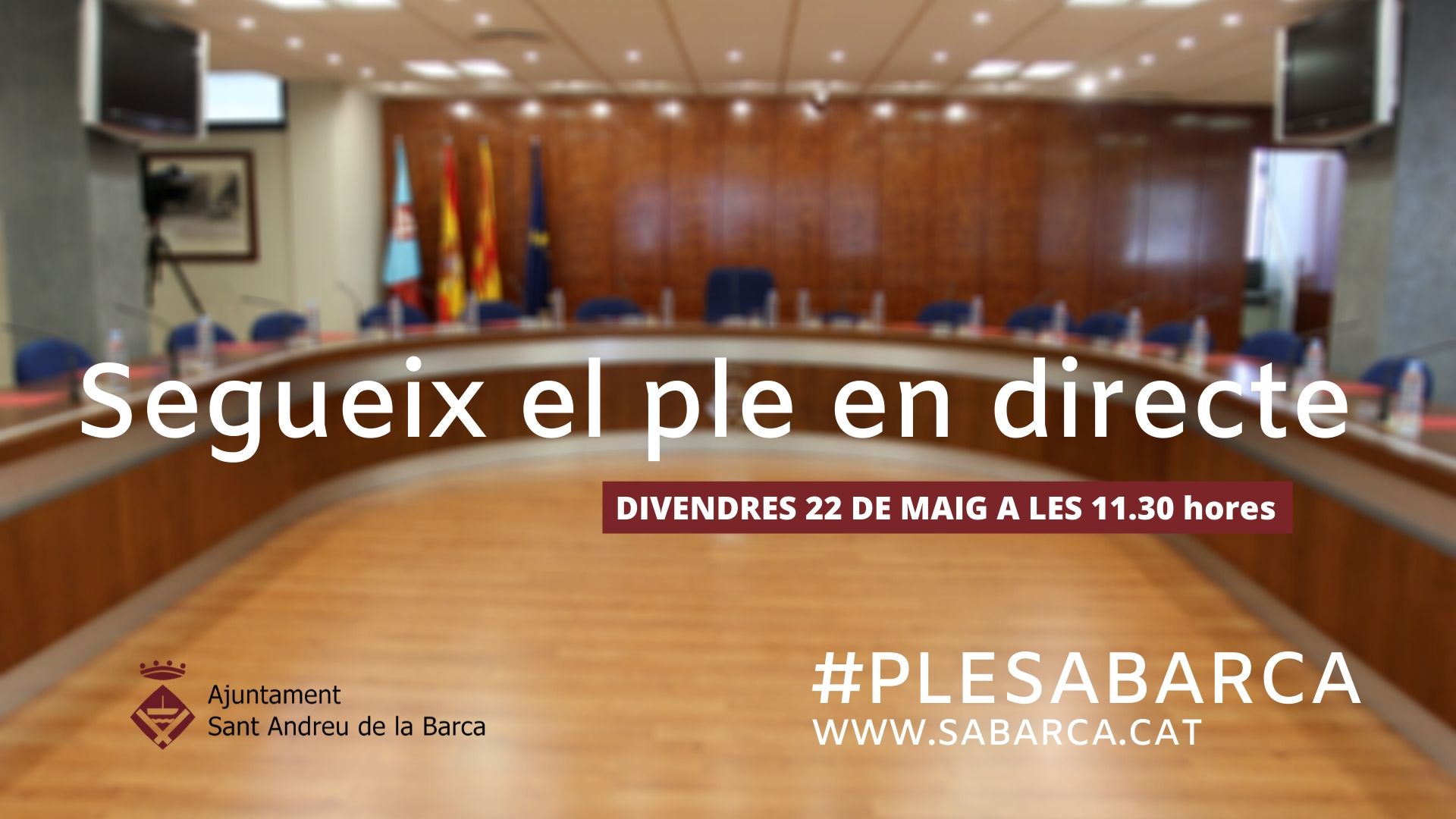 Recordeu que el podeu seguir per streaming a www.sabarca.cat, al canal de Youtube del consistori (@ajuntamentsabarca), a la pàgina de Facebook (@ajuntamentsab), per Ràdio Sant Andreu i a Twitter amb el hashtag #plesabarca.