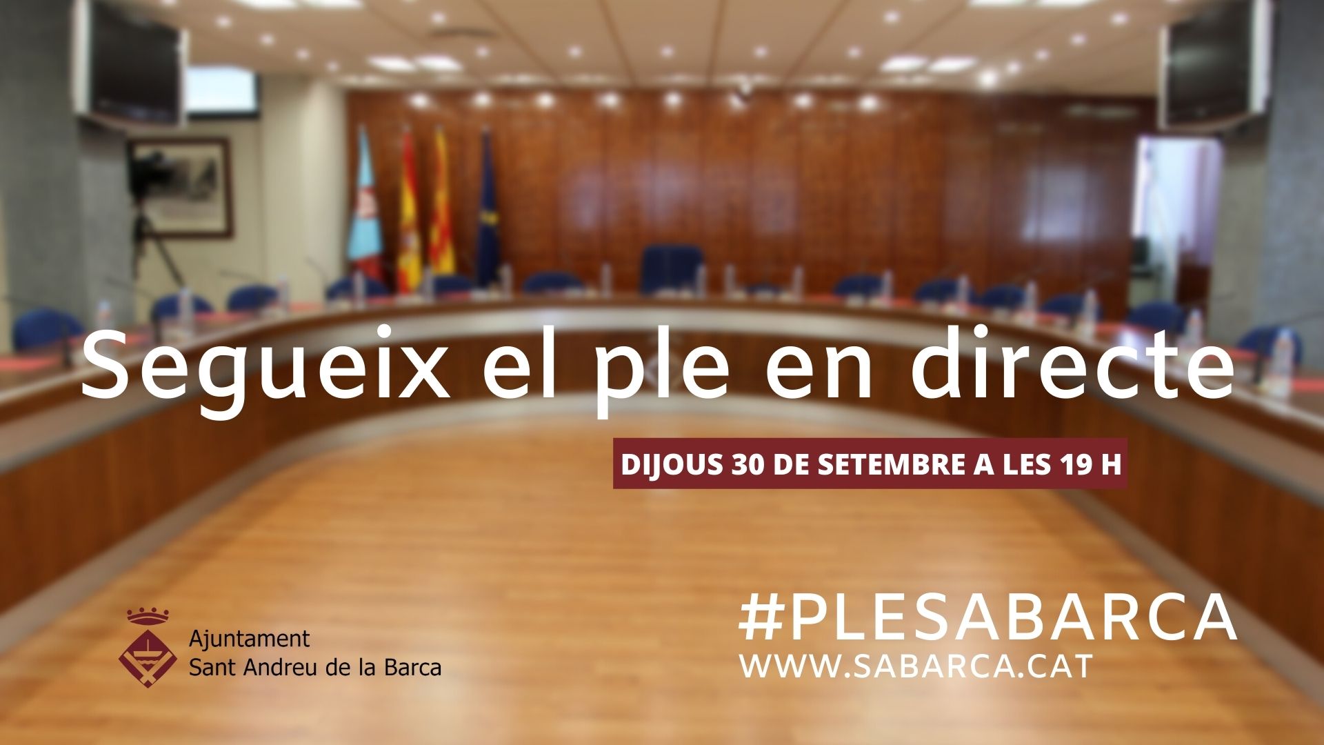 Recordeu que el podeu seguir per streaming a www.sabarca.cat, al canal de Youtube del consistori (@ajuntamentsabarca), a la pàgina de Facebook (@ajuntamentsab), per Ràdio Sant Andreu i a Twitter (@Ajuntamentsab) amb el hashtag #plesabarca.