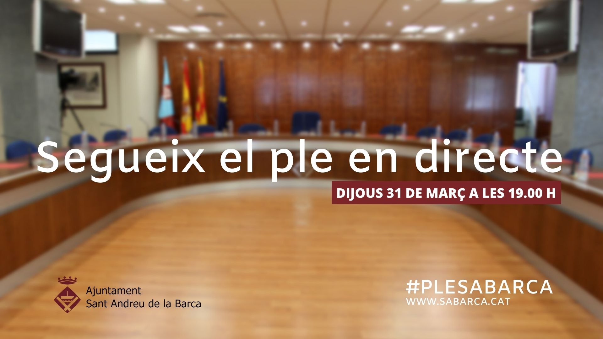 Recordeu que el podeu seguir per streaming a www.sabarca.cat, a la pàgina de Facebook (@ajuntamentsab), per Ràdio Sant Andreu i a Twitter (@Ajuntamentsab) amb el hashtag #plesabarca.