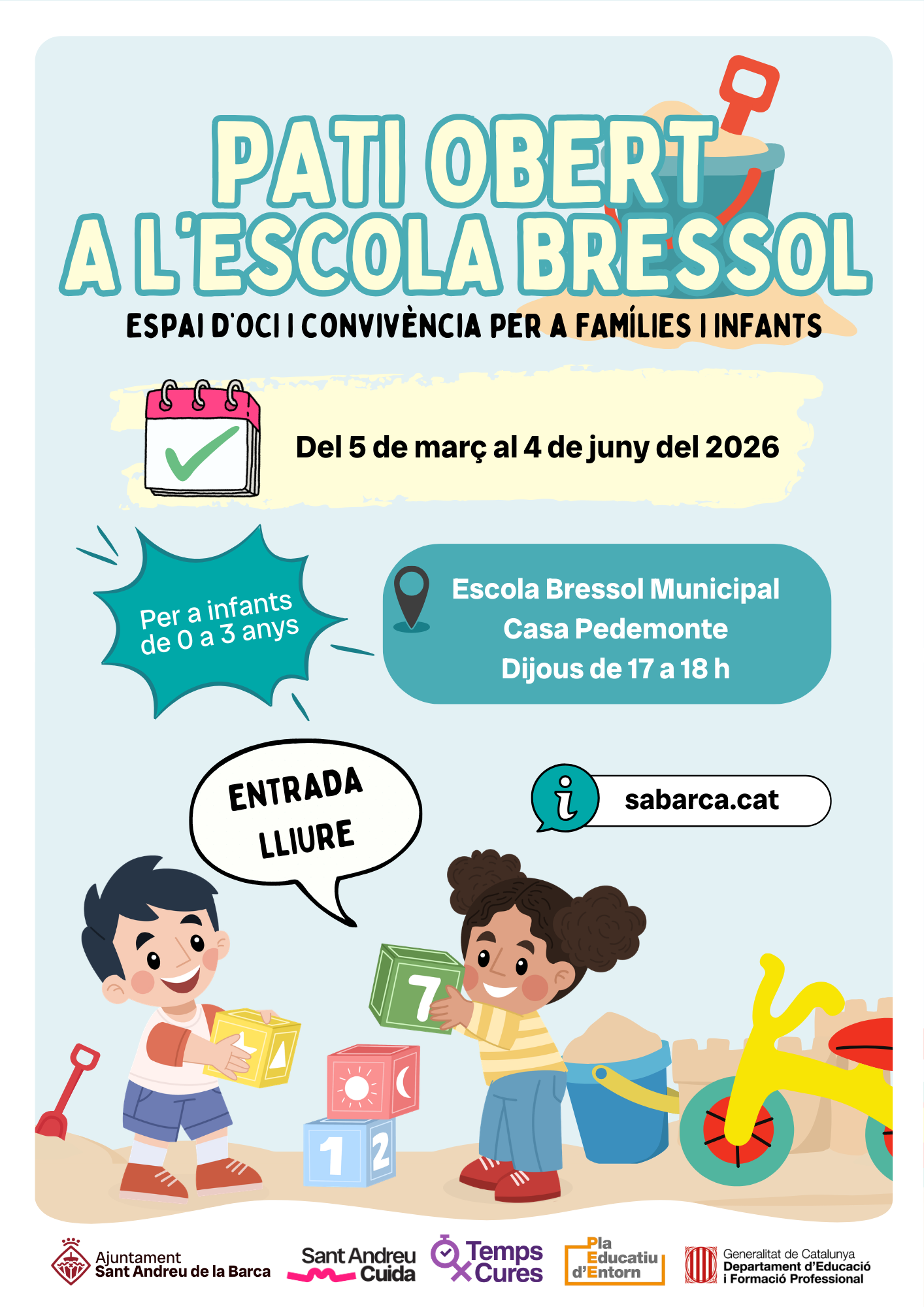Com ja es va introduir a la tardor, les famílies no han de quedar-se obligatòriament al recinte perquè els seus fills i filles puguin participar en el pati obert. L’accés continuarà sent lliure i gratuït sense necessitat d’inscripció prèvia.